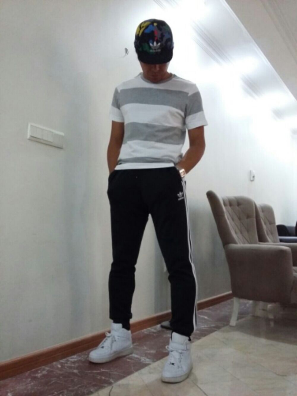 camo adidas capをコーデ。 久々にadidas original track pantsをチョイス。