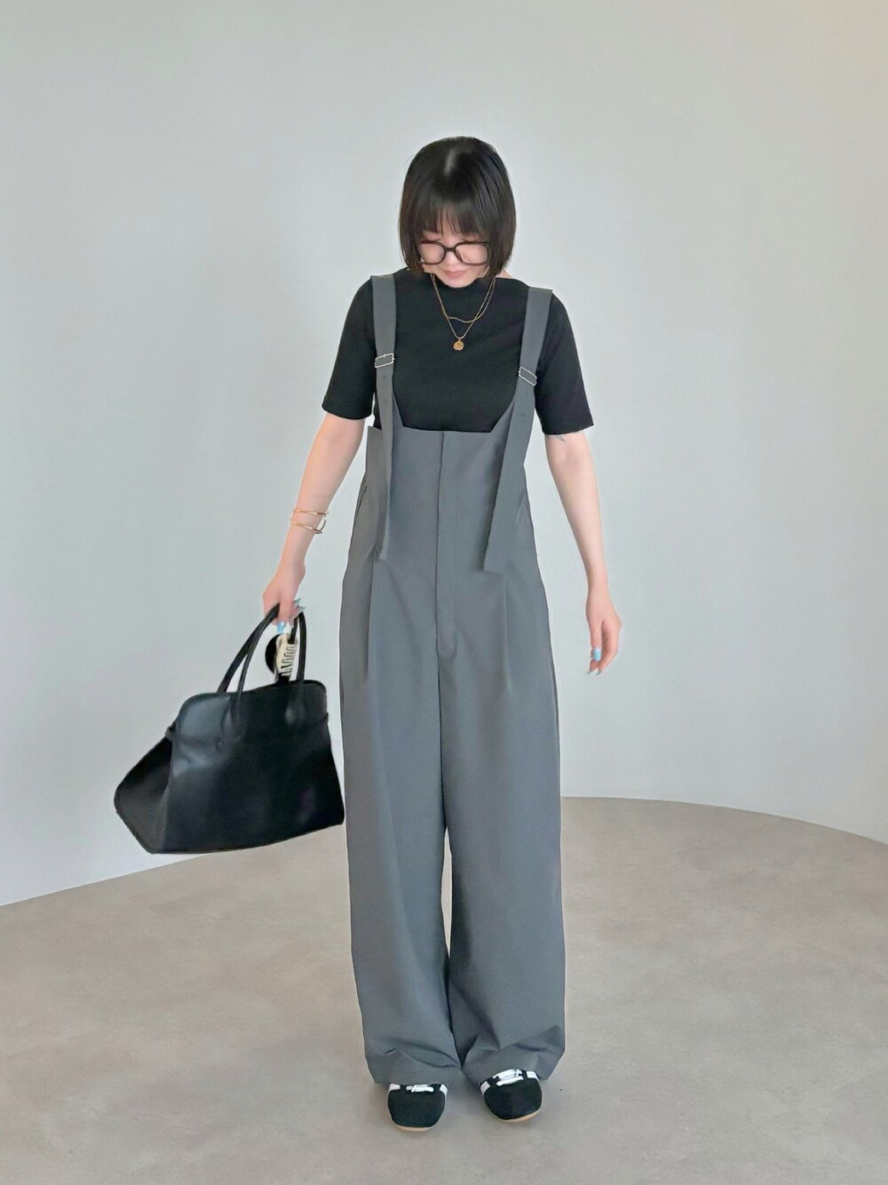 撥水素材のサロペは雨の日でも安心! シンプルながらもおしゃれな印象を与えてくれるシルケットコットンtシャツは人気アイテムです♩
