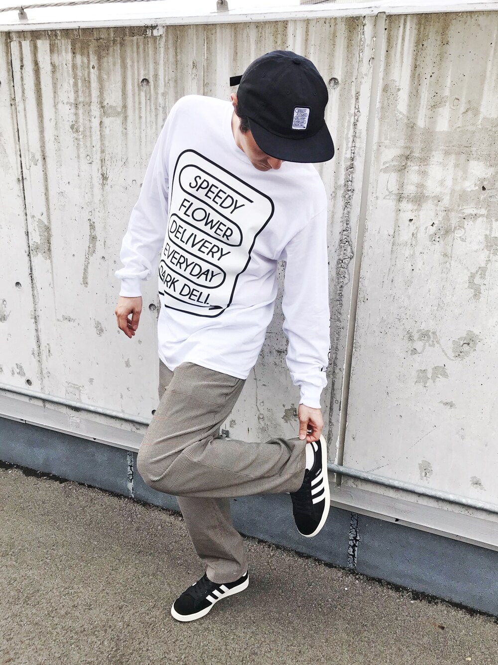 秋が来たと思ったら夏日… あまりの暑さに急遽ロンTをゲット! RARK DELIのロンTとキャップと テーラードチェックパンツ このパンツ色々使えそう👖