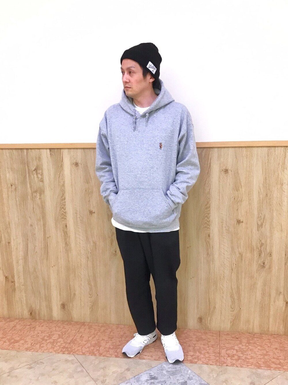 今日はラフにパーカーにニットキャップ🧶 クマのワンポイントがたまらない🧸 この後パンツをスウェットに履き替えてスノボへGO🏂