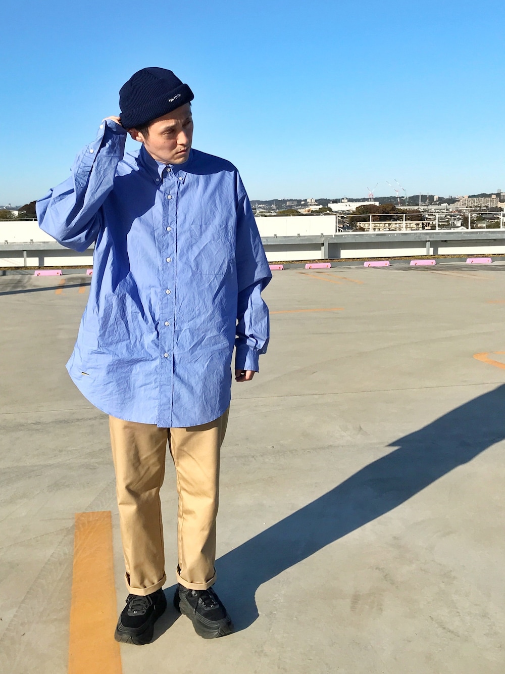 暑がりなのでシャツで十分👔 浅めのビーニー デカめのシャツ この組み合わせがお気に入り🧢