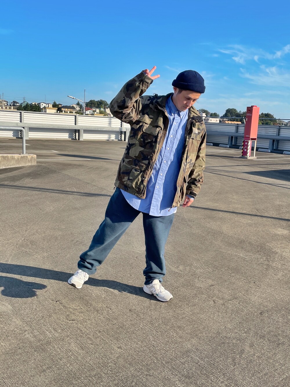 シンプルな全身ブルーで アウターは迷彩でガチャガチャと🧥 やっぱり暑いより寒い方が好きだな🍁☃️