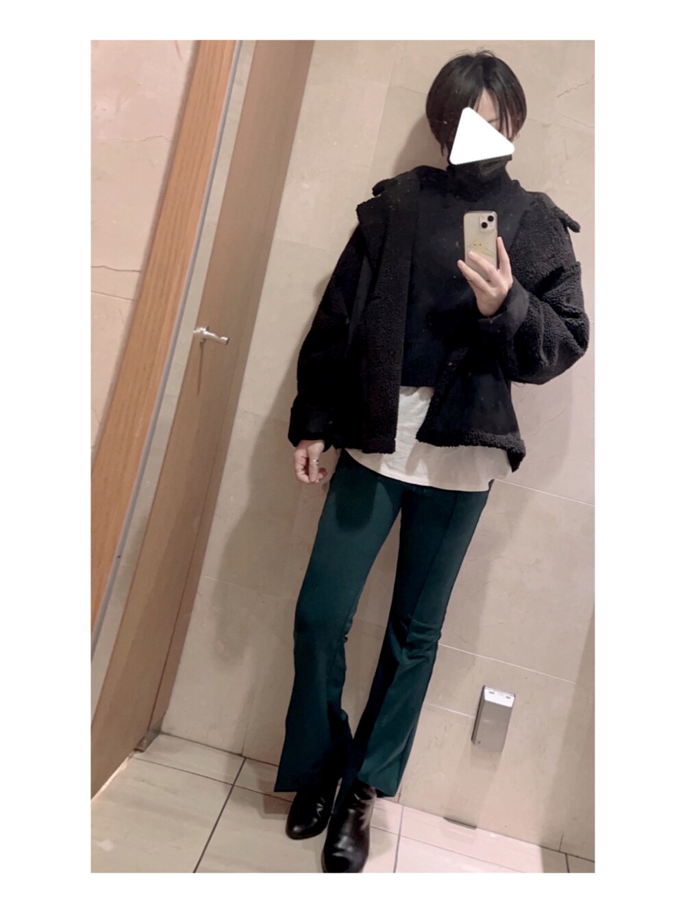 たおのムートンコート「スウェード×ボア フェイクムートンライダースジャケット」を使ったコーディネート
