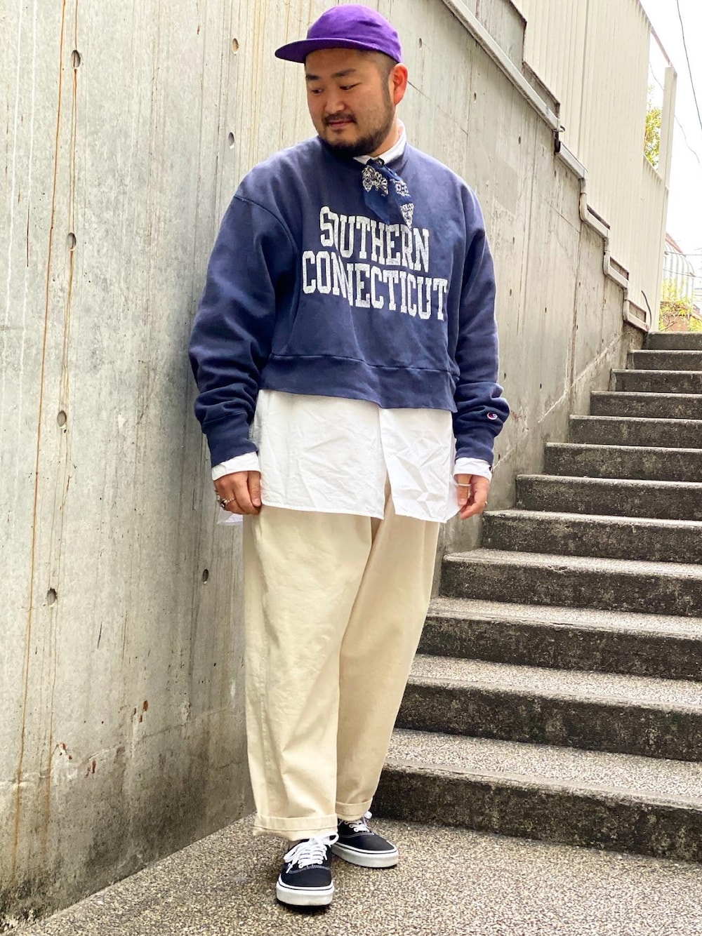 KOIZUMI TAIKIのバンダナ/スカーフ「BANDANA PRINT(COTTON) SCARF TIE / NAVY」を使ったコーディネート