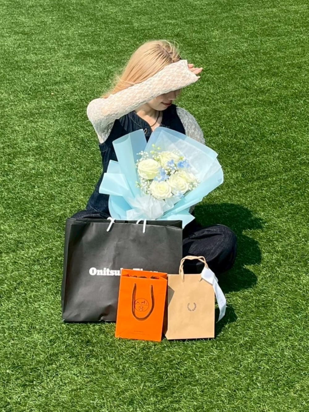 レーストップスにデニムのセットアップで甘くなりすぎないように✨ 靴は見えてないけどウエスタンブーツ かっこかわいいのシンプルコーデ!