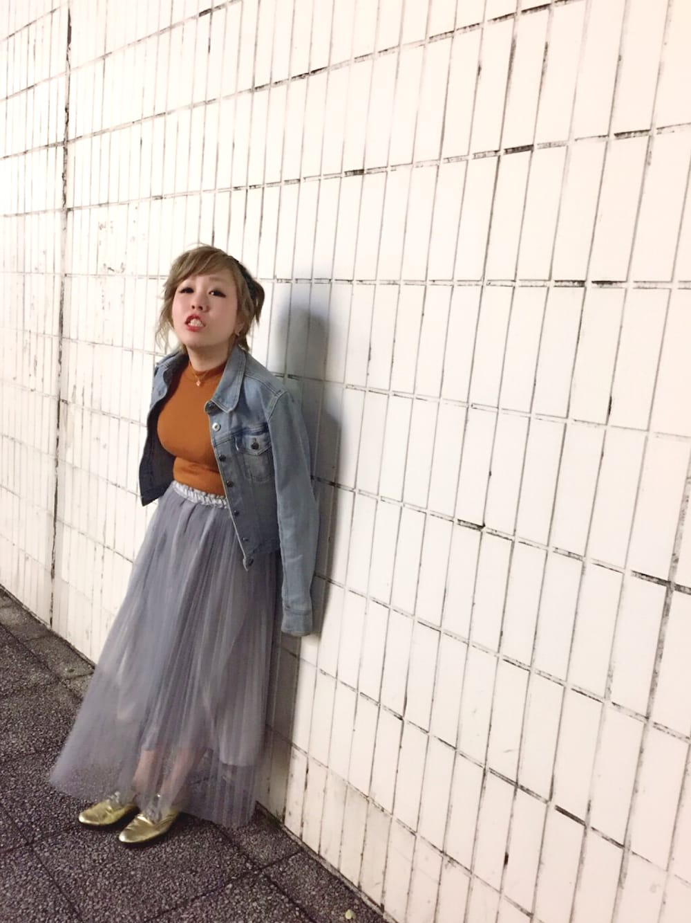 最近寒い🐥🐥🐥 ショートヘアだけどロング風に ヘアバンドでアレンジ💓 チュールスカートさむーーーい!