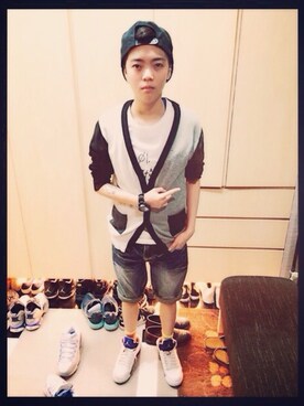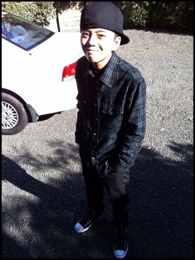 「NEW ERA(ニューエラ)のWEGO/59FIFTY NY YANKEES(キャップ、ブラック系)」を使った、DJAARONさん(メンズ)の春コーディネート