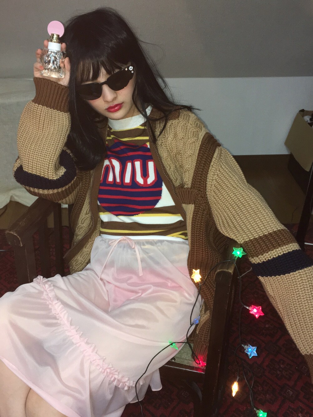 ブラウン系のトップスを着用したレディースの冬コーディネートの1枚目の写真
