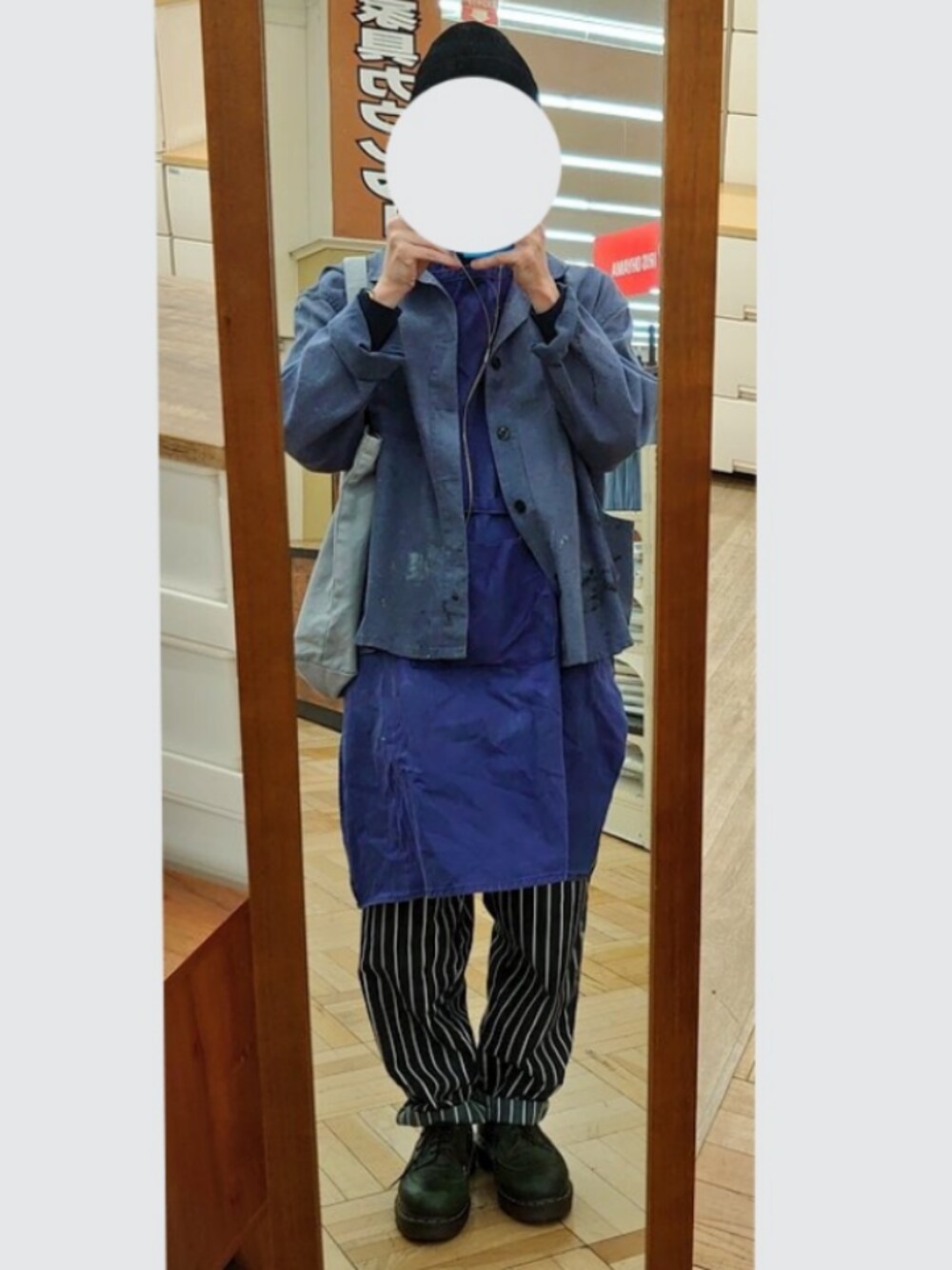 いい感じのコーデを見かけたので今日はエプロン遣い 家に全身鏡がない