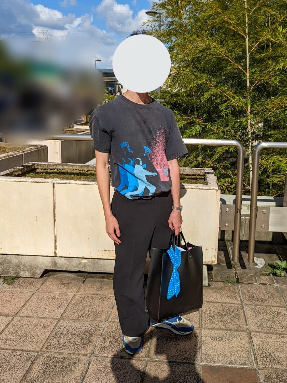 cg_ootd day2 ユニクロ(レディース)のフレアパンツに古着のトップスをタックイン バッグのバンダナは推しイメージ
