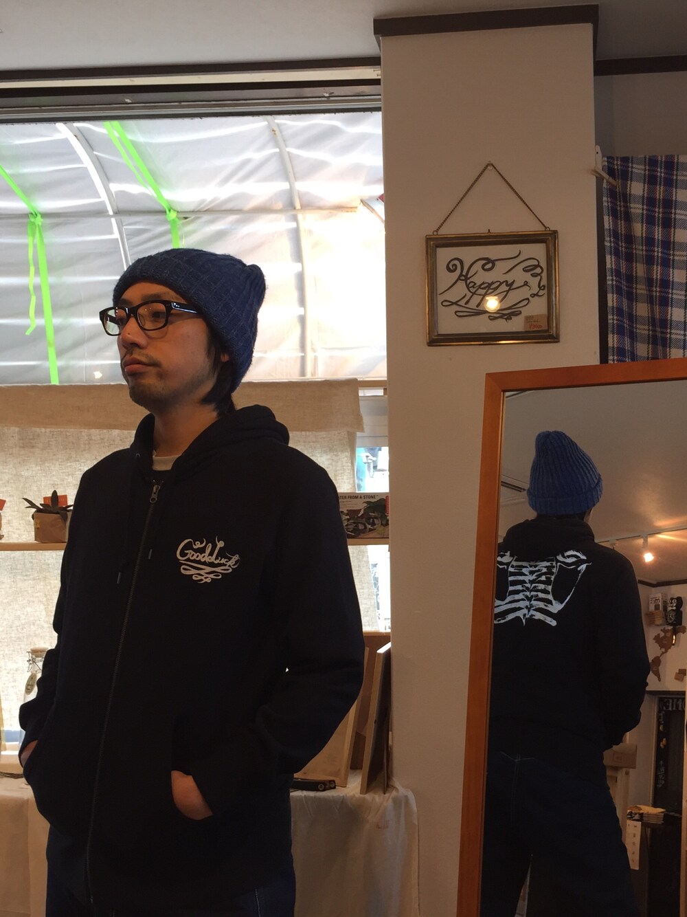 2プリントのパーカー。 左胸に(good luck) 背中に(back bone) #シルクスクリーン #デザイン #borderless #border1ess #オリジナルプリント http://borderless.theshop.jp/ #customize_by_border1ess