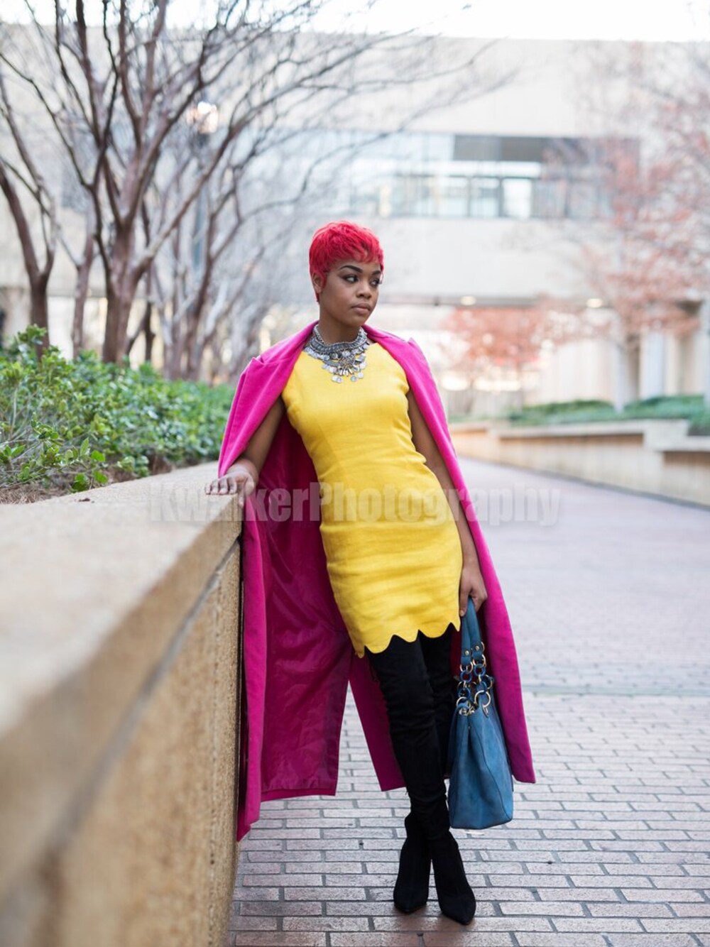 Mixing spring colors with fall attire.