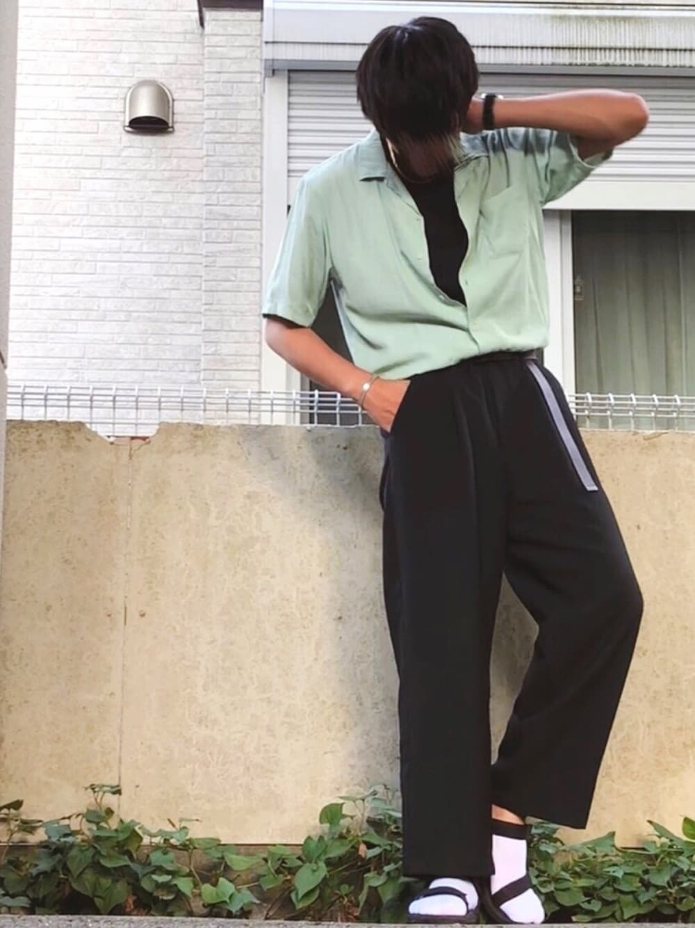 タックインコーデ‼️ “Theme” 今回のテーマはずばりタックインです😊 足長く見えておすすめです!!ワイドパンツと合わせるのが個人的に大好きです😍 JUNRedのライトグリーンのオープンカラーシャツ周りと被らないし、爽やかで夏にはぴったりです!! “Point” ・タックインで足長効果✨ ・スポサン✕白ソックス ・ライトグリーンで爽やかに🍃 “Size” tops L inner L bottoms L shoes 10 いつもいいね、セーブ、フォローありがとうございます🙂 これからもよろしくお願いします!
