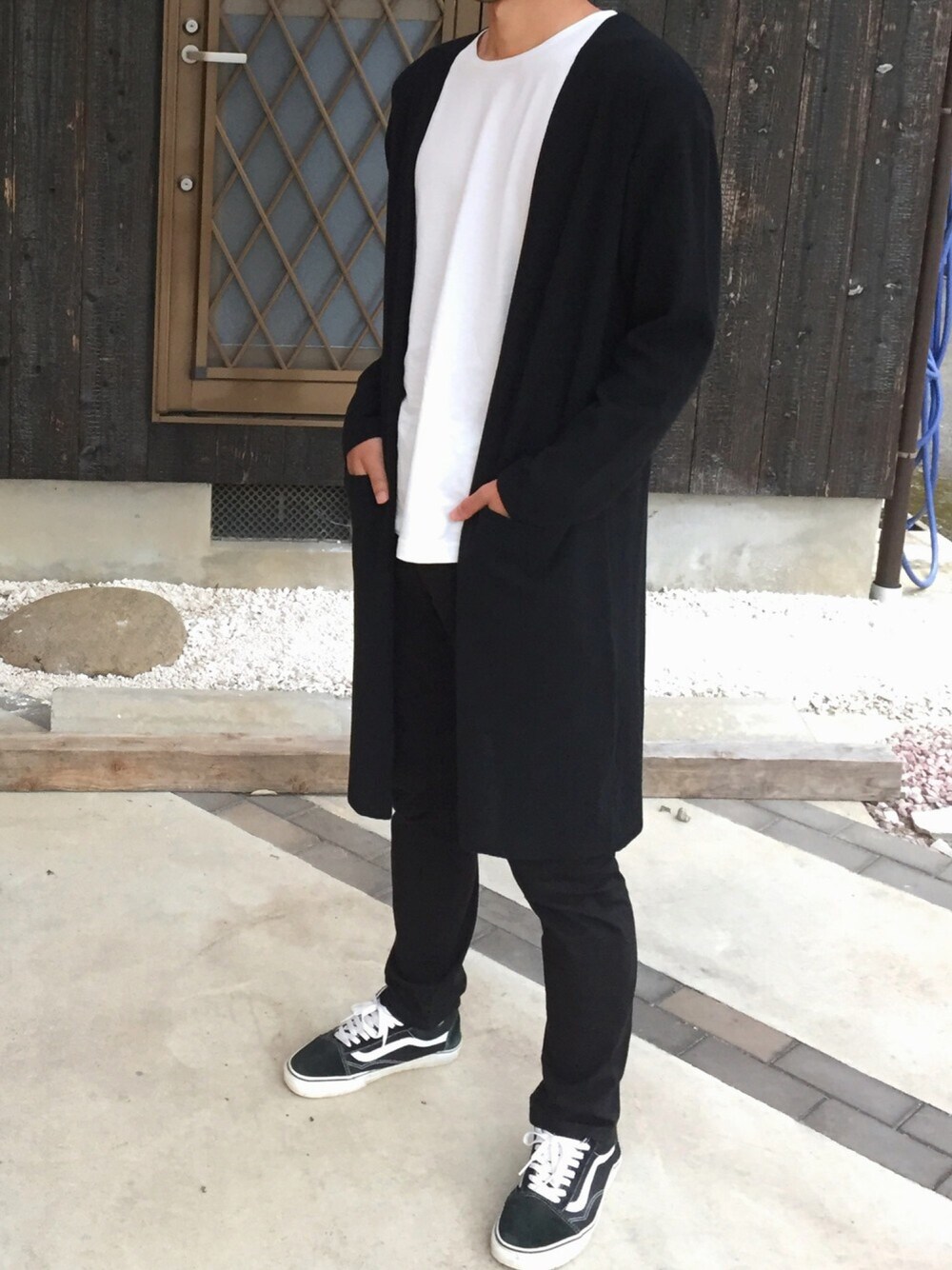 欲しかったロングカーディガン‼︎ モノトーンコーデ 質問:このコーデに合う靴って何ですか⁇ サイズ カーディガン L パンツ 32 シューズ 28