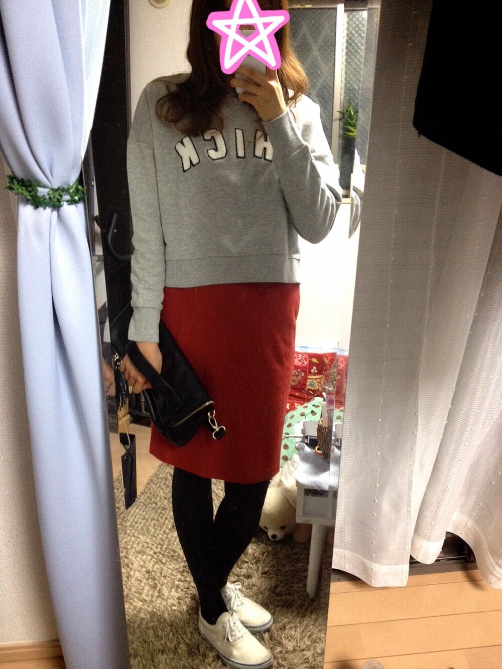 赤いスカートが主役です(^^)♪ 他はシンプルにまとめました♥️