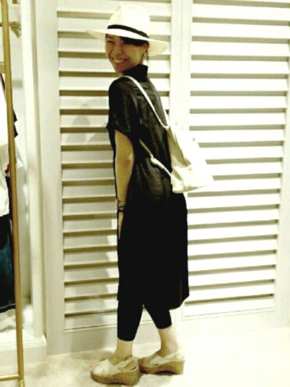 こんにちは✨😃❗ ブージュルード沖縄ライカム店より✨ 本日のスタッフコーデです❤ 大人気のシャツワンピを主役に、夏らしいハットとサンダルでスタイリングしてます❗ ブラックでもサラリとした質感で涼しく快適、さらに動きやすくらくちんです❤