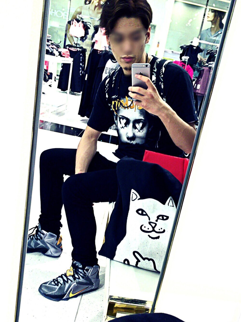 NIKE lebron12のスニーカー それとRIPNDIPの手さげバッグが鏡に写って可愛いです👾