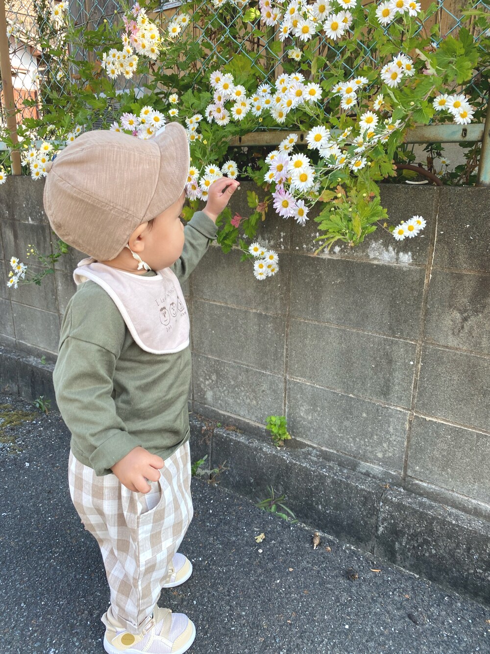 いつも、いいね&お気に入りありがとうございます😊 この前の散歩してた時にお花を見つけて興味津々だったようで触ろうと手を伸ばしてました🌼