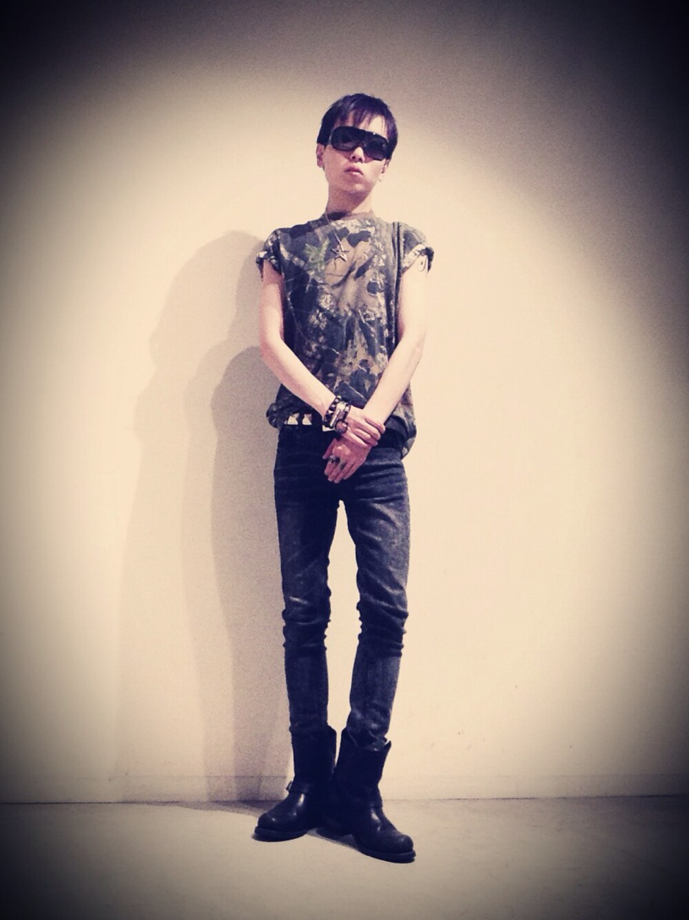 20歳前後の頃はこんなスタイルばかりでした(笑) 元々はROCK、PUNKの匂いのするアイテムがしっくりきます。 USも好きですが、 どちらかと言えばUK派です。 あの頃からは想像もつかない位、 様々な格好をする様になったものです。 パンツ、サングラス、リング以外、古着です。