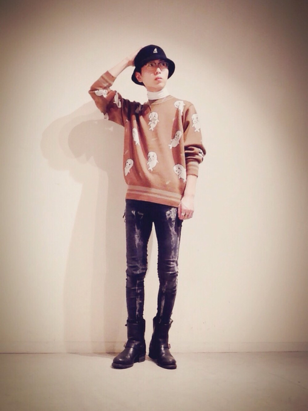自分の手持ちでトップ5に入る位にはレアなこのトップス。 少年アシベはゴマちゃん総柄セーターです。 ジャンプのオフィシャルタグ付き(笑) これをどう合わせるか考えていたら 1年越しになってしまいました。 余りにファンシーなので 逆にハードなスタイリングに合わせてみました。 セーターありきのコーディネート。 セーター、カットソー、メガネ以外、古着です。
