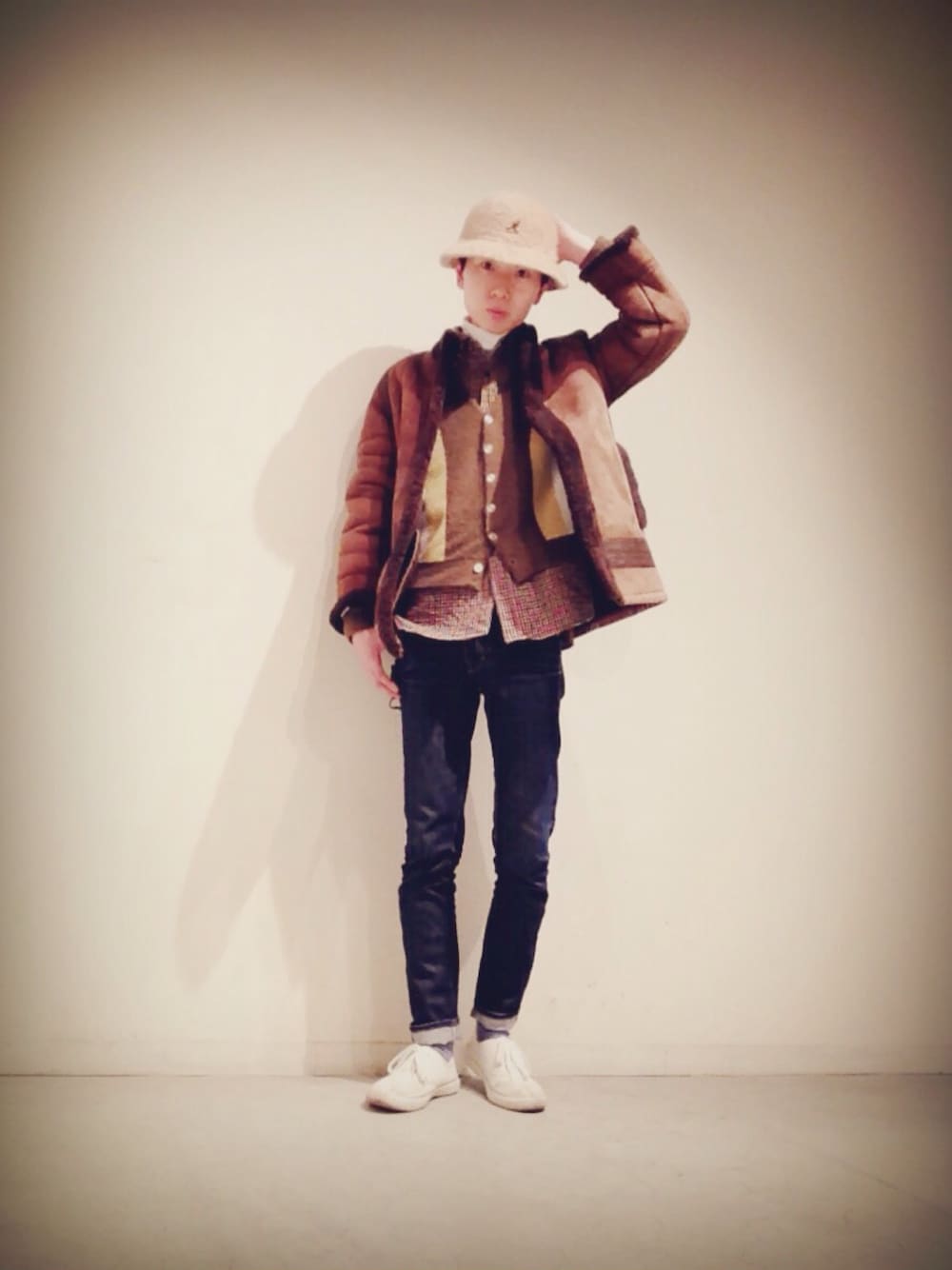 気温から考えればやや大袈裟かもしれませんが、 トップス重ねまくってます。 まぁ、寒さに強い身体では無いので 結果的にはオーライなのです。 全体的にもこもこしたアイテムなので スキニーデニムパンツで締めます。 スニーカーは軽さを。 カットソー、スニーカー以外、古着です。