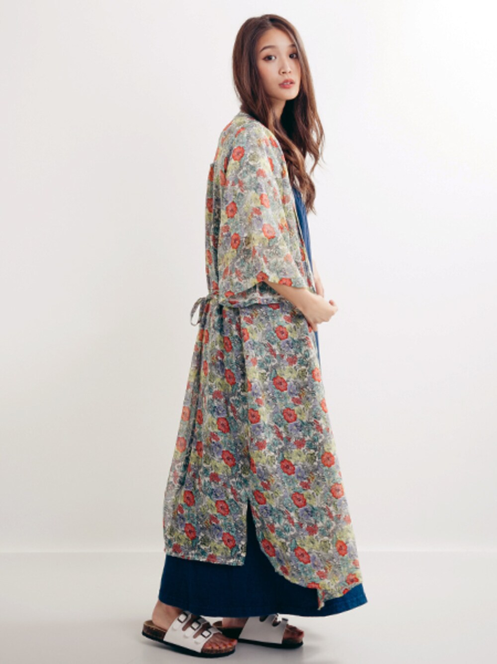 華やかなお花のプリントが女性らしさを演出してくれるガウン。 サラッと羽織るだけで季節感のあるコーデに仕上がるガウンは、 今すぐ押さえておきたい1枚。 ヒラヒラとなびく軽やかな素材は羽織りやすく、デイリー使いに。 Tシャツにデニムを合わせたシンプルなコーデに映える優秀な1着です。