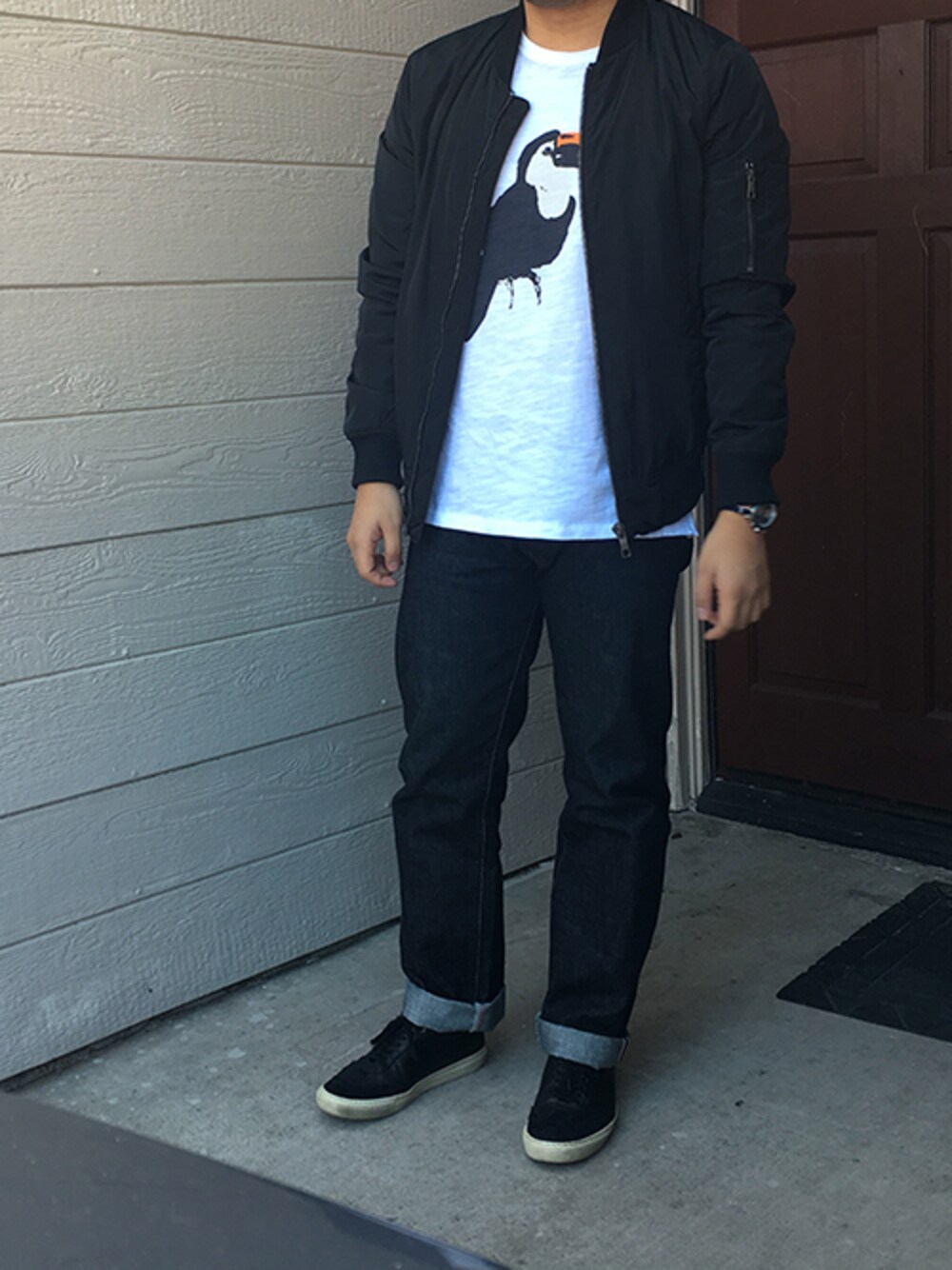 ZARA$80rag & bone$50桃太郎ジーンズ$200ALDO$70この画像から似たアイテムを検索できます7207お気に入り (0)70boykunさんへのコメントNO COMMENTコメントはスマートフォン用アプリからご利用できます着用アイテム$80ZARAZARABomber Jacketその他アウター (ブラック系)その他アウター探すZOZOTOWNで探す$50rag & bonerag & boneToucan T-ShirtTシャツ/カットソー (ホワイト系)Tシャツ/カットソー探すZOZOTOWNで探す$200桃太郎ジーンズ桃太郎ジーンズ1005SPデニムパンツ (ブルー系)デニムパンツ探すZOZOTOWNで探す$70ALDOALDOENSCHEDEスニーカー (ブラック系)スニーカー探すZOZOTOWNで探すboykunのその他アウター「Bomber Jacket」を使ったコーディネートコメントを表示2016.1.3着用ブランドZARArag & bone桃太郎ジーンズALDOタグ#ZARA#rag&bone#桃太郎ジーンズ#ALDOモデル情報男性・170cm似ているアイテムZARA × その他アウターrag & bone × Tシャツ/カットソー桃太郎ジーンズ × デニムパンツALDO × スニーカーboykun@boykunnn / 170cm / MEN0コーディネート0フォロワー注目のコーディネートアプリでもっと見るもっと見る