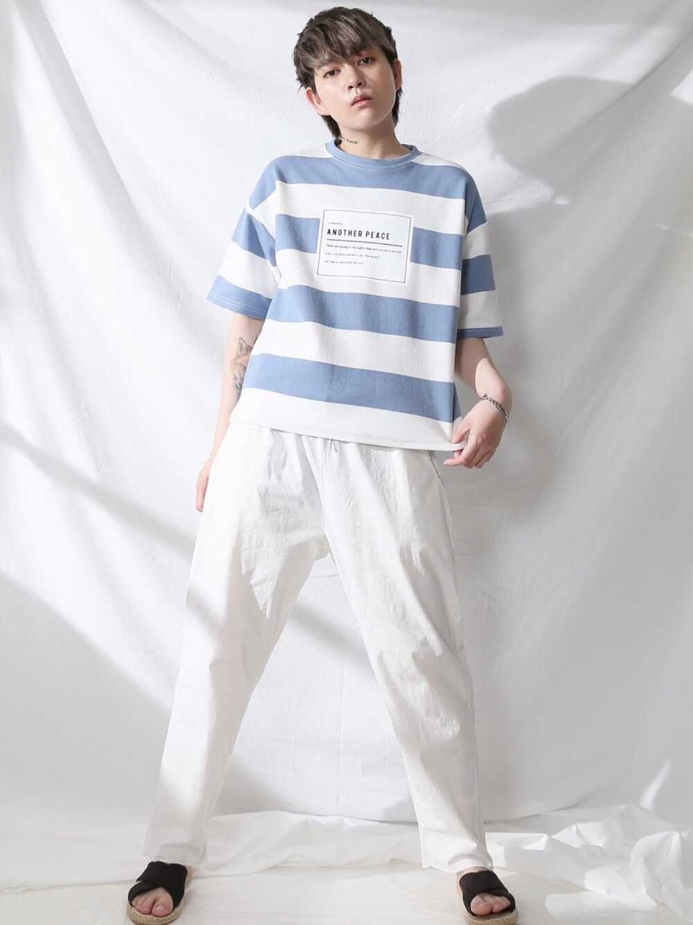 BOYSHEのTシャツ/カットソー「PEACE ビッグボーダー ショート丈Tシャツ【2 color】」を使ったコーディネート