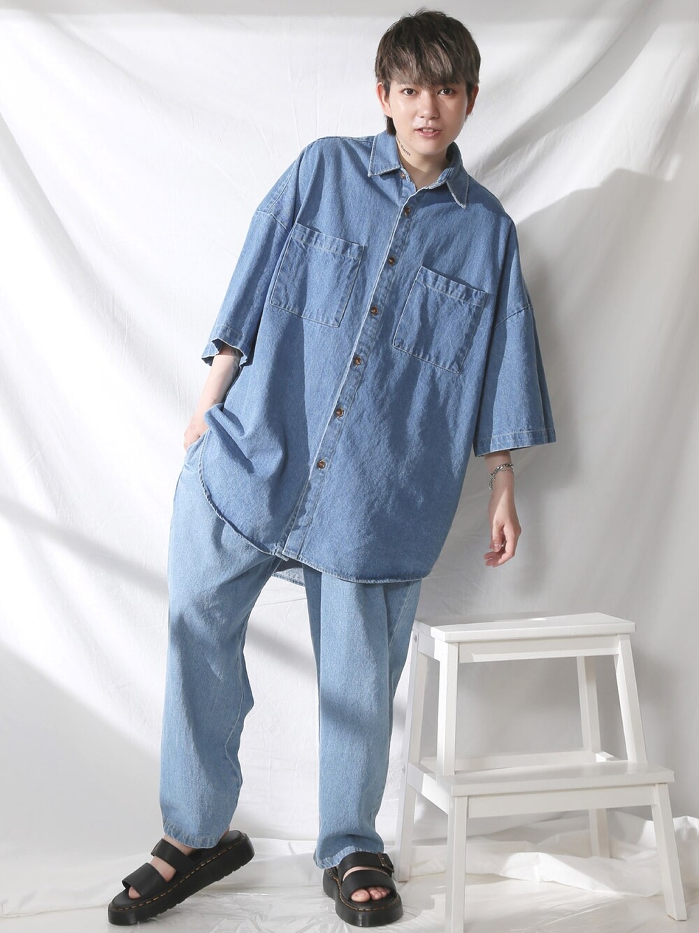 BOYSHEのシャツ/ブラウス「BIGシルエット デニム半袖シャツ ブルー」を使ったコーディネート