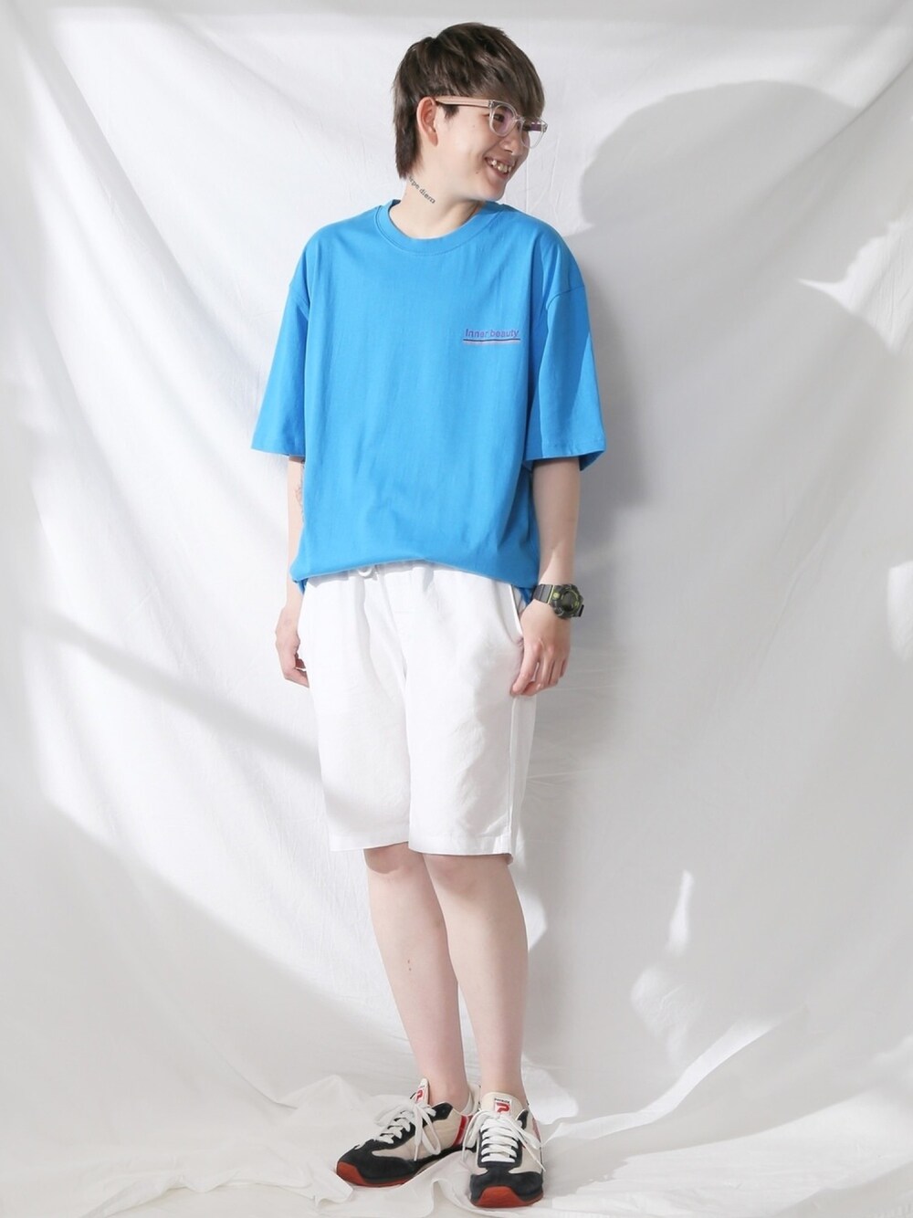 BOYSHEのTシャツ/カットソー「ADDICTION ビッグシルエットTシャツ ブルー」を使ったコーディネート