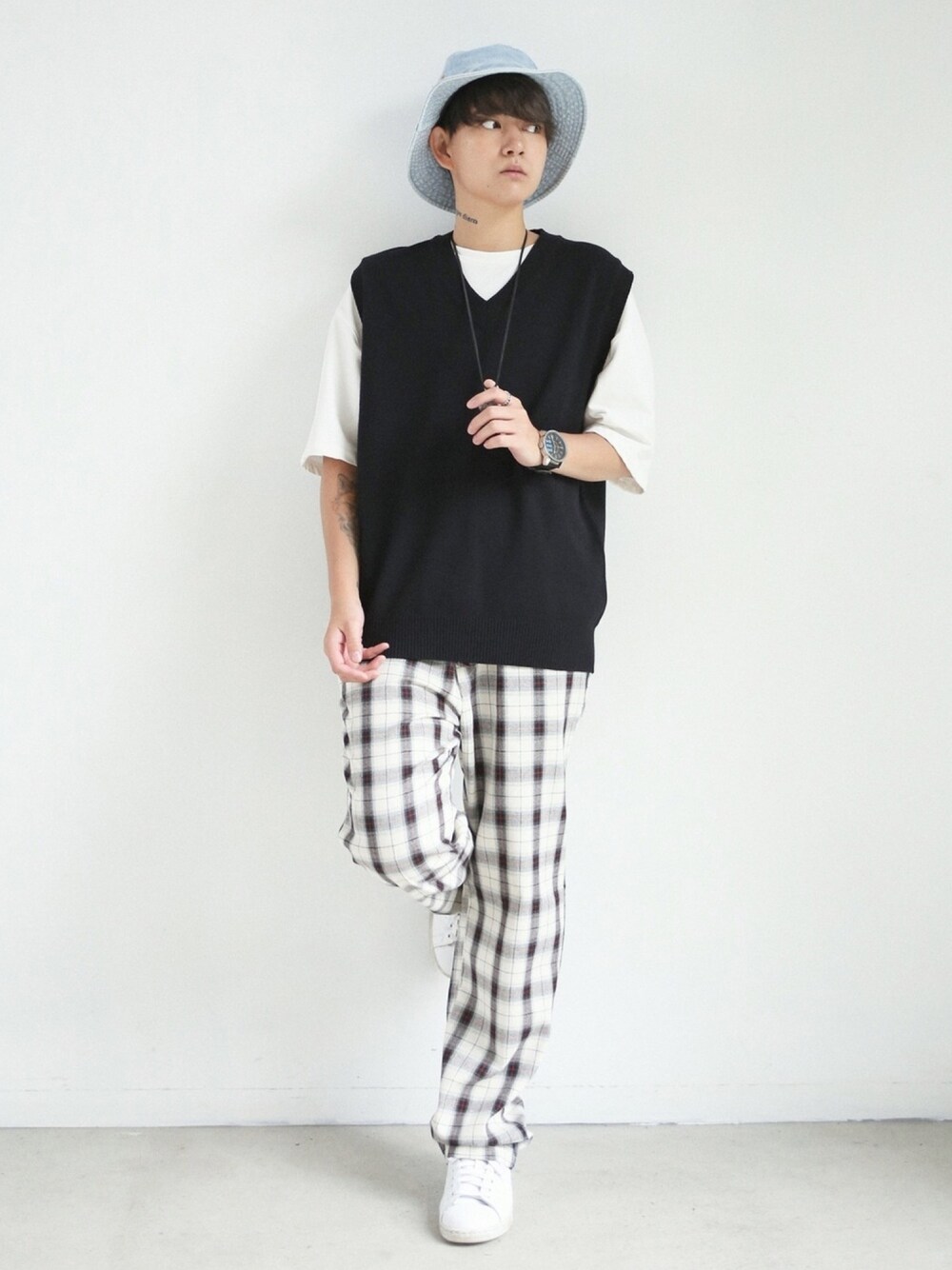 ベストコーデ 明るめのチェックパンツと合わせてカジュアルに。 身長:163cm Instagram@boyshe_official