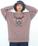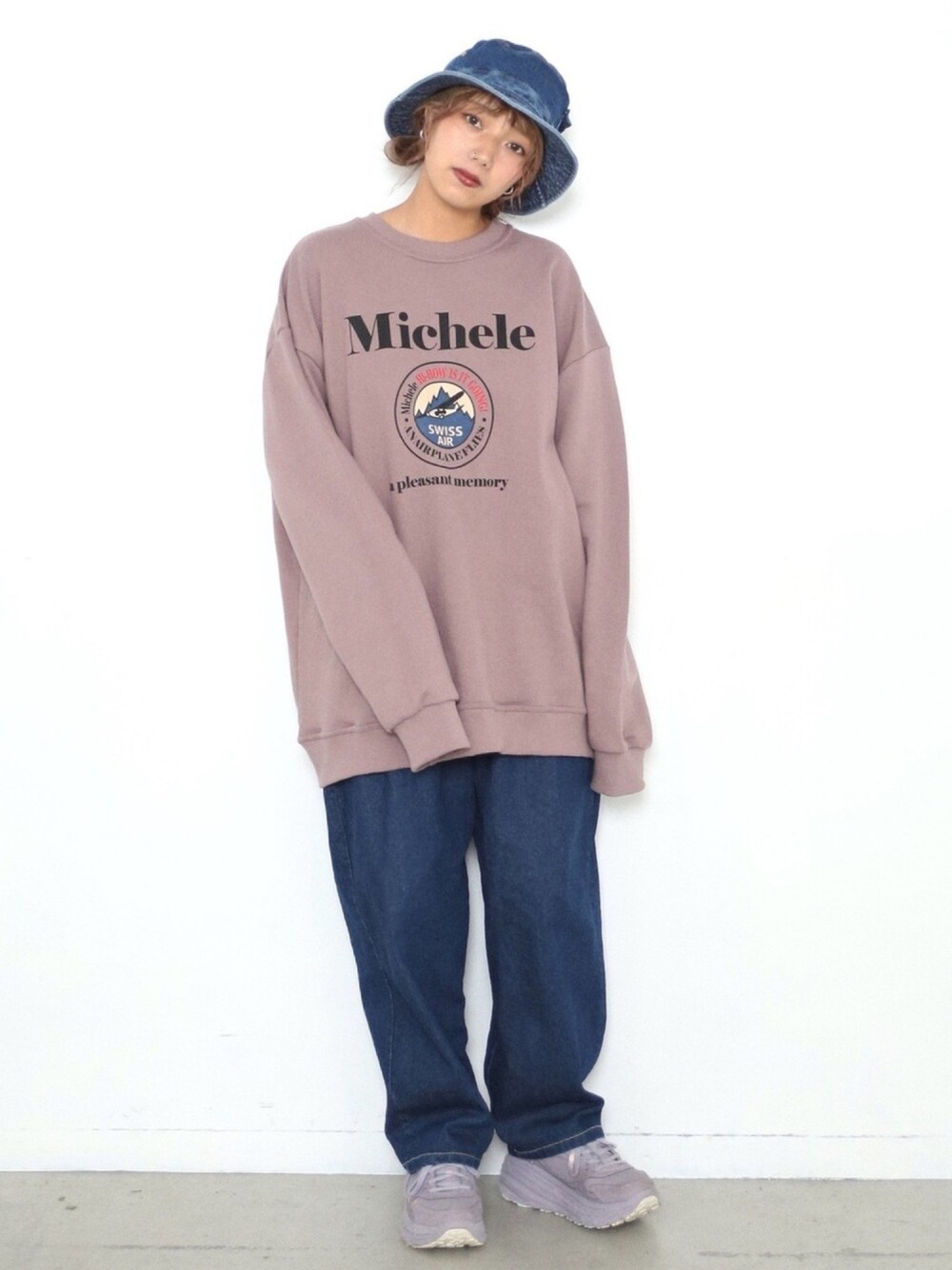 スウェットとデニムパンツで楽ちんコーデ。ピンクベージュのロゴスウェットはビッグサイズでゆったりとしたシルエットです。 身長:155cm Instagram@boyshe_official