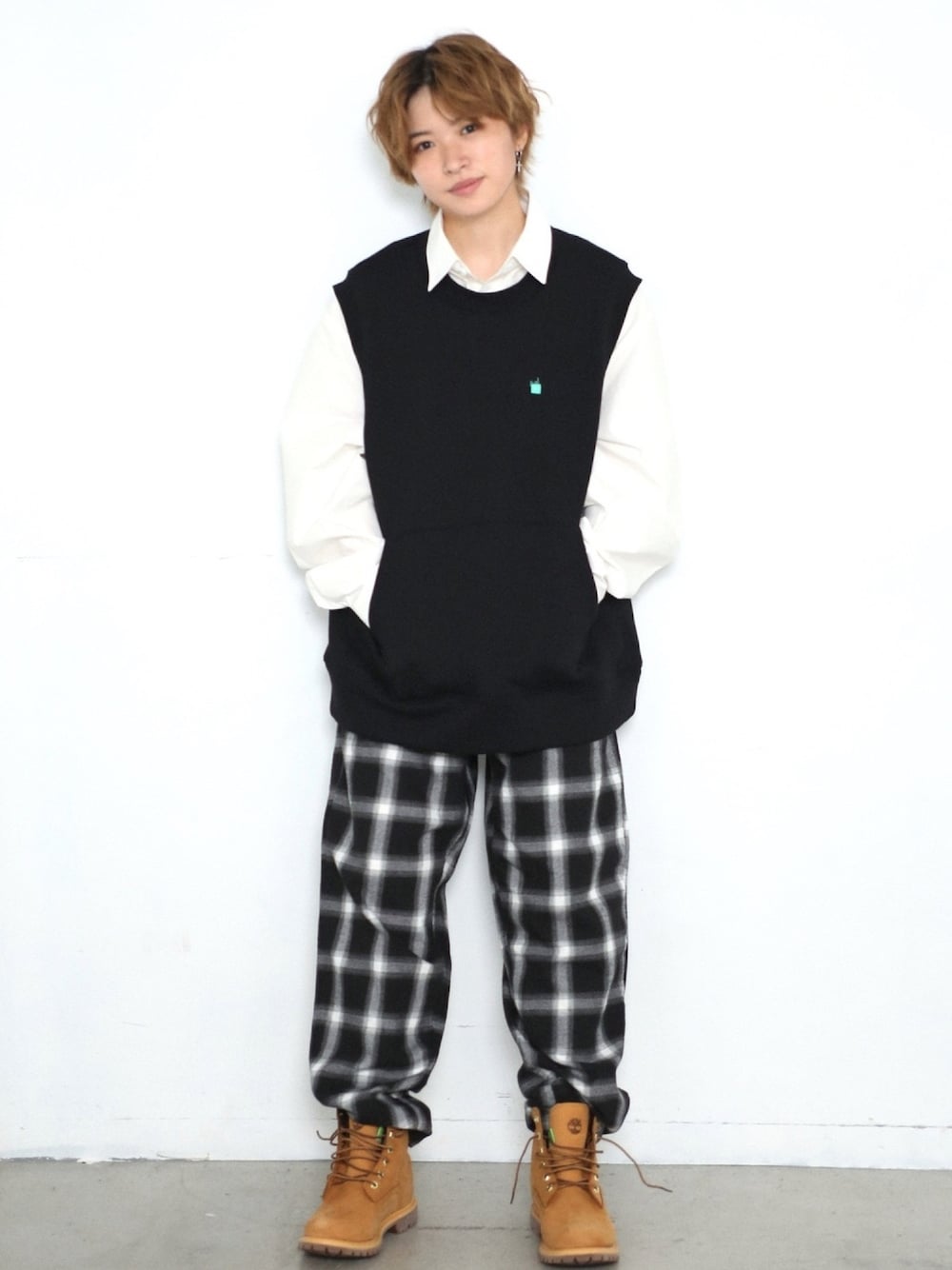 ベストコーデ。 ベストはやや厚手のしっかりした生地感で、裏が起毛で暖かいです。 身長:161cm Instagram@boyshe_official