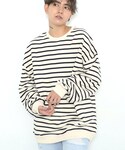 BOYSHEのスウェット「ビッグシルエットクルーネック ボーダースウェット アイボリー」を使ったコーディネート