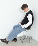BOYSHEのベスト「クルーネック 裏起毛プルオーバーベスト ブラック」を使ったコーディネート