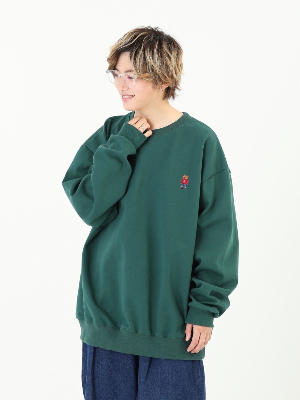 BOYSHEのスウェット「Bベアー クルーネックスウェット グリーン」を使ったコーディネート