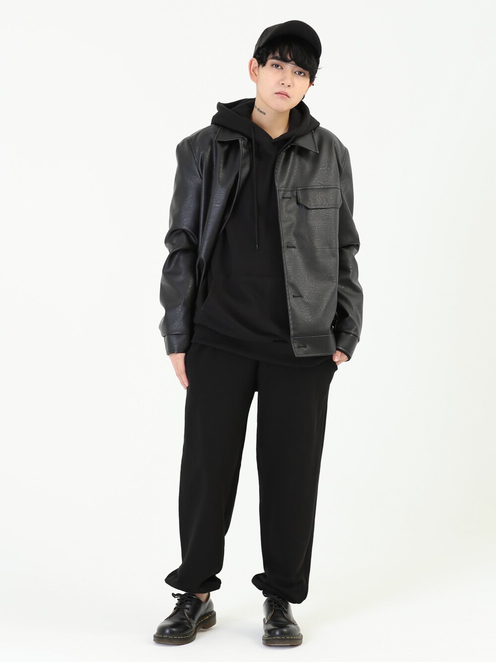サラッとした滑らかな肌触りと優しい質感のスウェットセットはルームウェアからデイリーユーズでもオシャレに着こなせるアイテムです。 合皮ながらも柔らかくしなやかな質感のフェイクレザー素材のジャケットは軽い素材なのでストレスフリーで着用できます。 身長:163cm Instagram@boyshe_official
