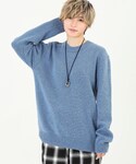 BOYSHEのニット/セーター「プレミアムラム クルーネックニット ディープブルー」を使ったコーディネート