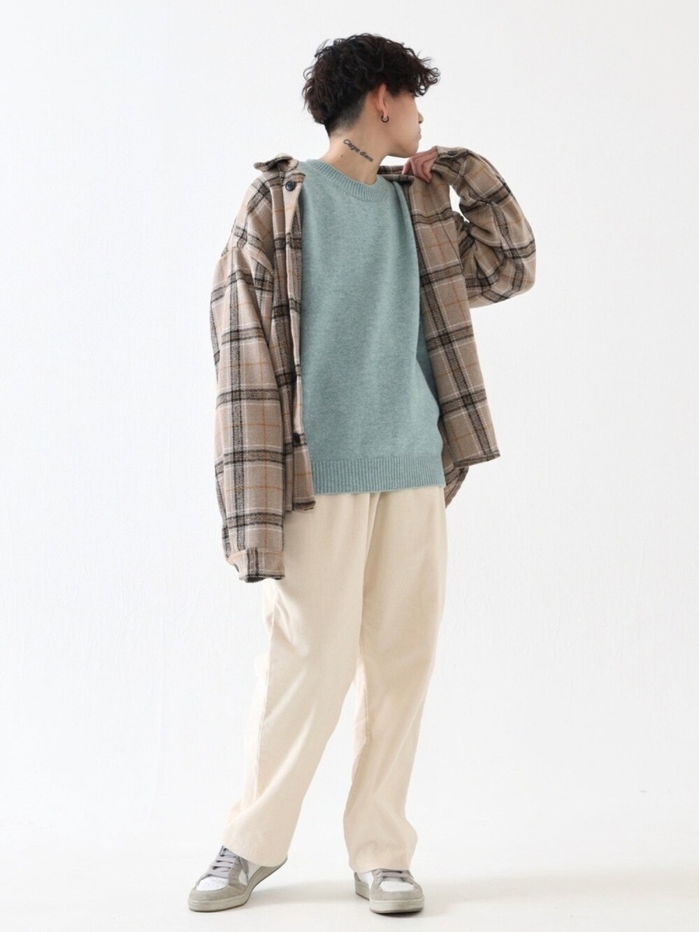 BOYSHEのニット/セーター「プレミアムラム クルーネックニット ミント」を使ったコーディネート