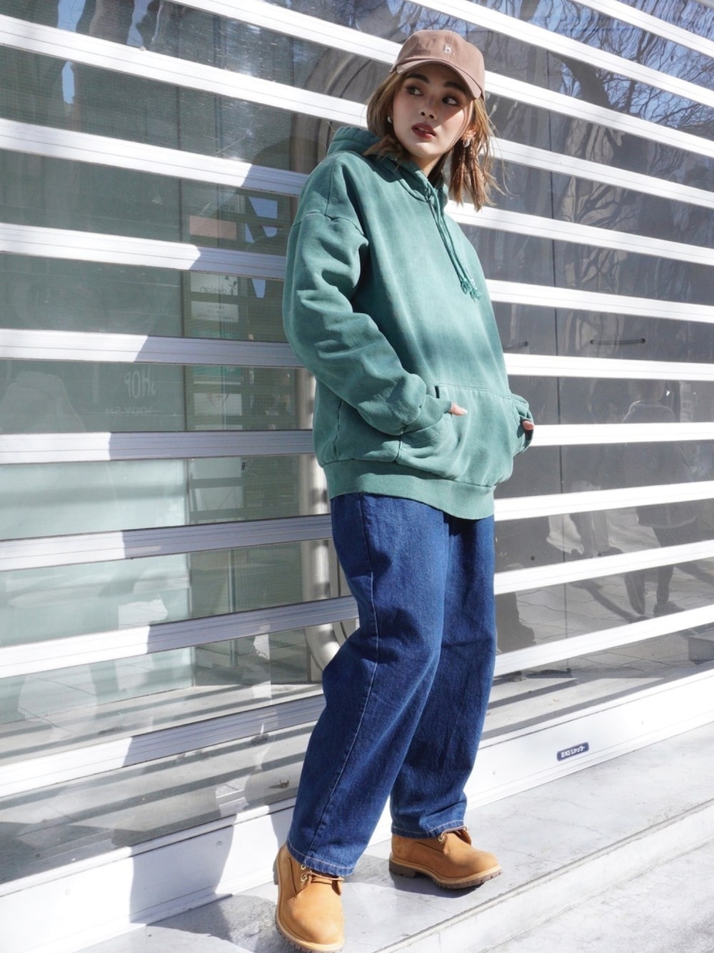 トップス: オーバーリング ピグメント裏起毛フードパーカー グリーン 身長:160cm Instagram@boyshe_official