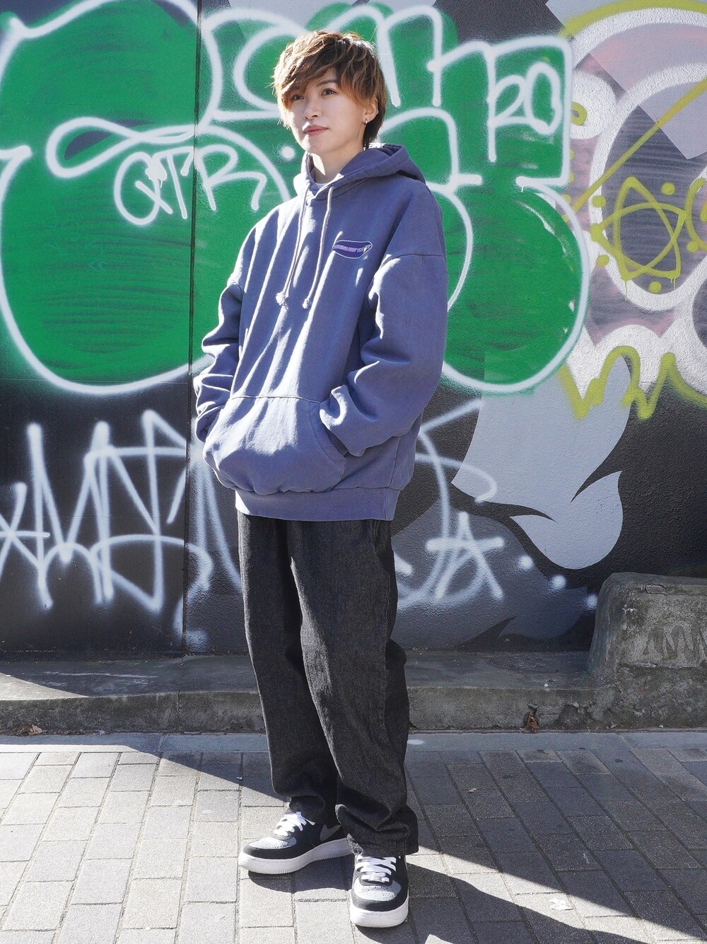 トップス: オーバーリング ピグメント裏起毛フードパーカー ネイビー 身長:161cm Instagram@boyshe_official
