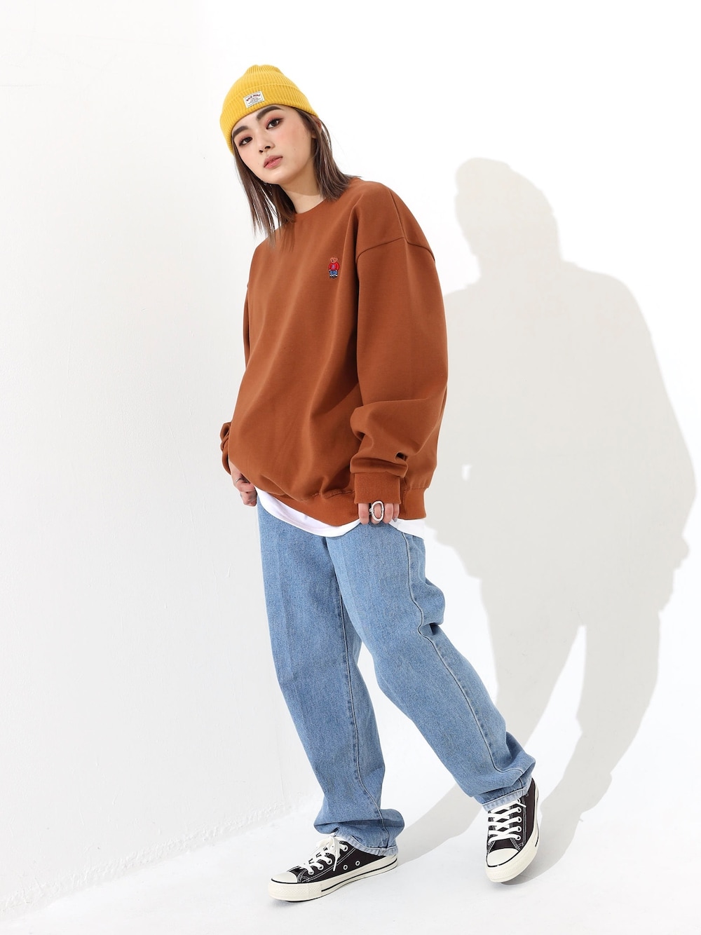 ・トップス: 【NEW color】Bベアー クルーネックスウェット ブラウン ・パンツ: ストレートデニムパンツ【3 size】 現在、クリアランスセール中! 身長:160cm Instagram@boyshe_official