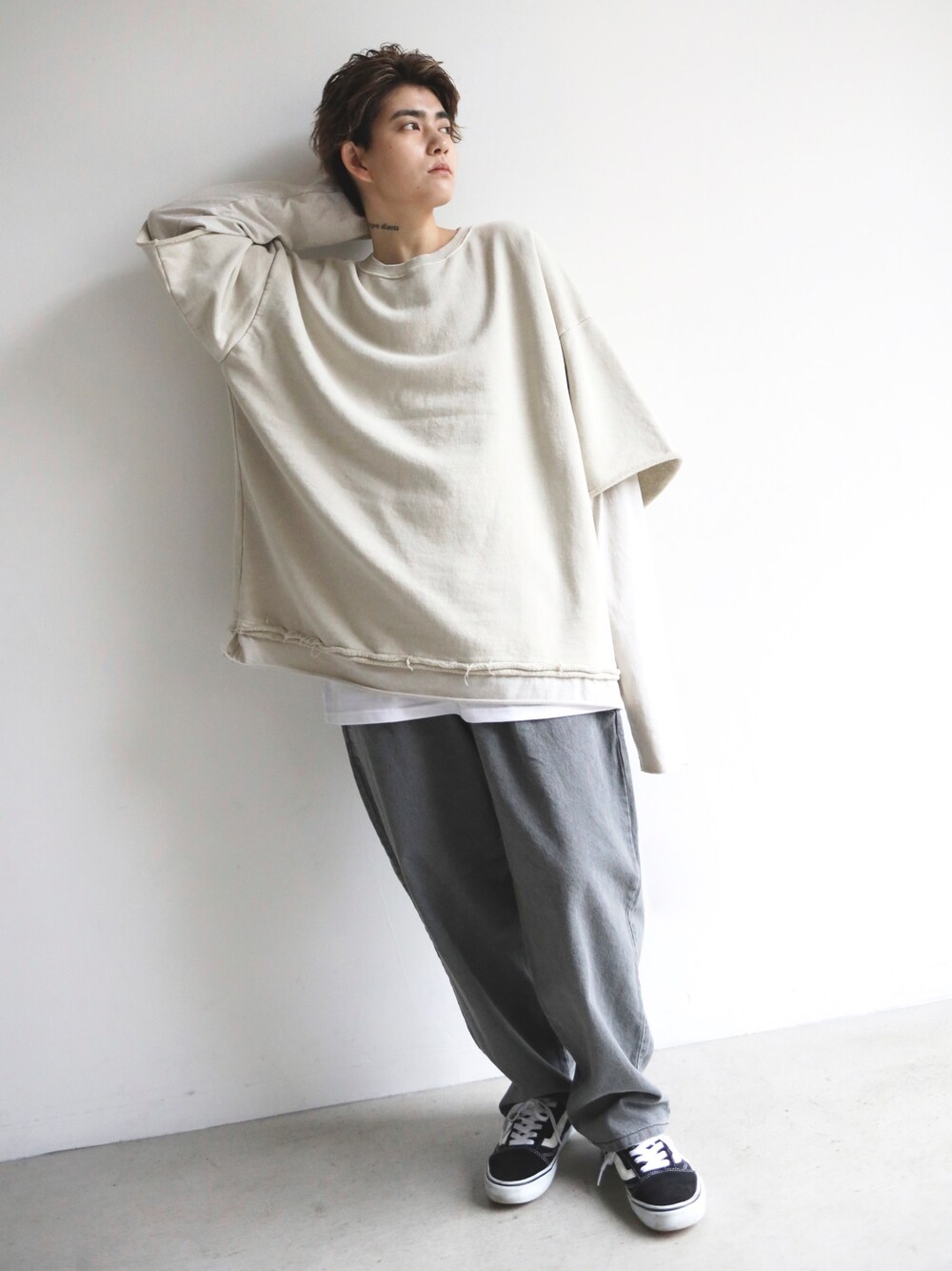 トップス: ピグメント レイヤードロンT アイボリー パンツ: デニムバギーバンディングパンツ チャコール ※現在、1周年記念最大1万円クーポン配布中!本日までです! 身長:163cm Instagram@boyshe_official