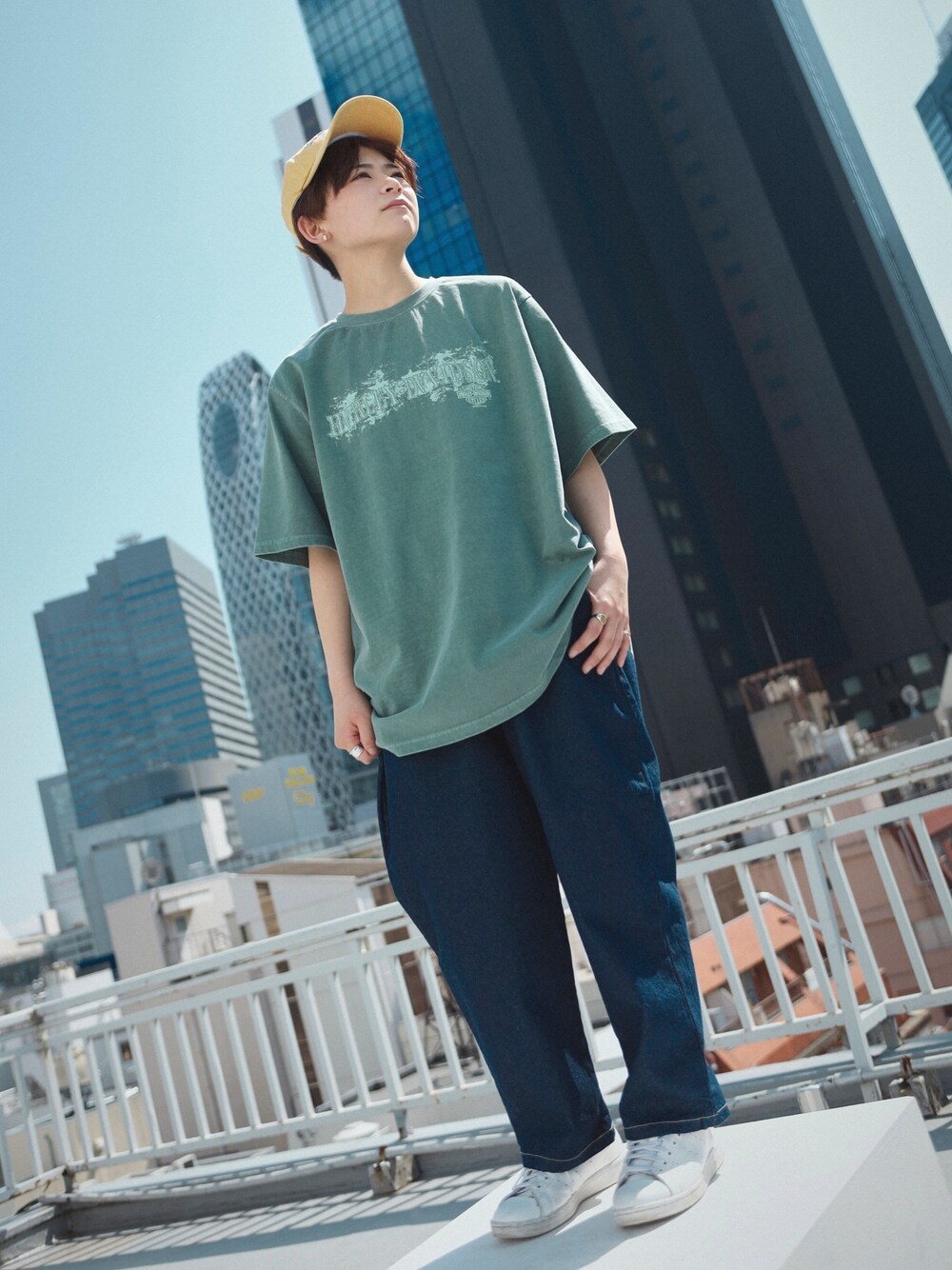 トップス: ピグメント ツーリングTシャツ【3 color】 パンツ: デニムバギーバンディングパンツ ダークブルー 身長:153cm Instagram@boyshe_official