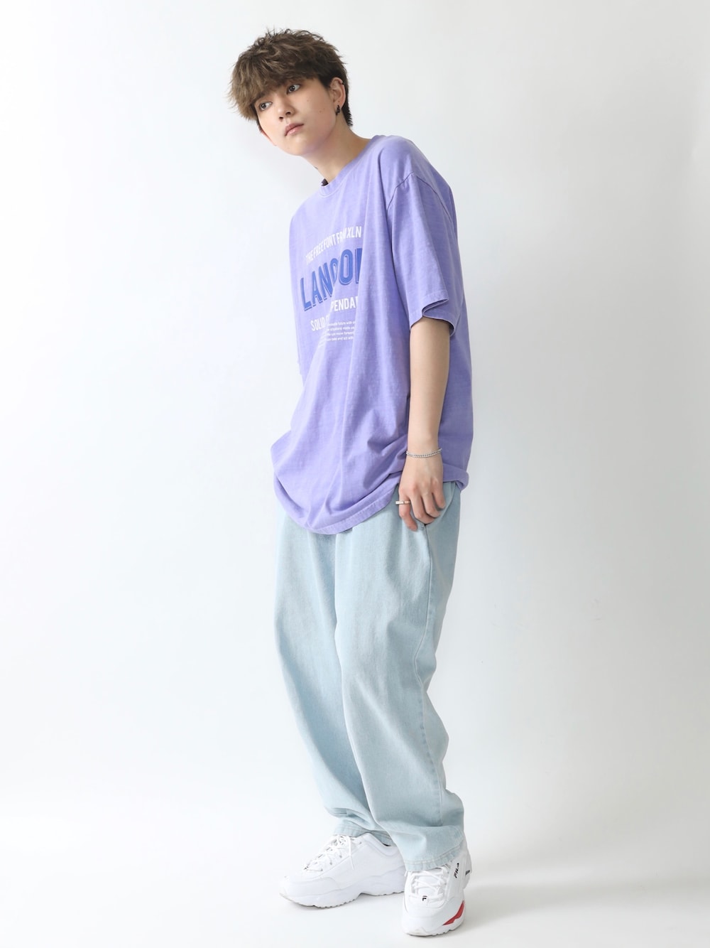 トップス: SOLID ピグメント 半袖T【4 color】 パンツ: デニムバギーパンツ【5 color】 身長:163cm Instagram@boyshe_official