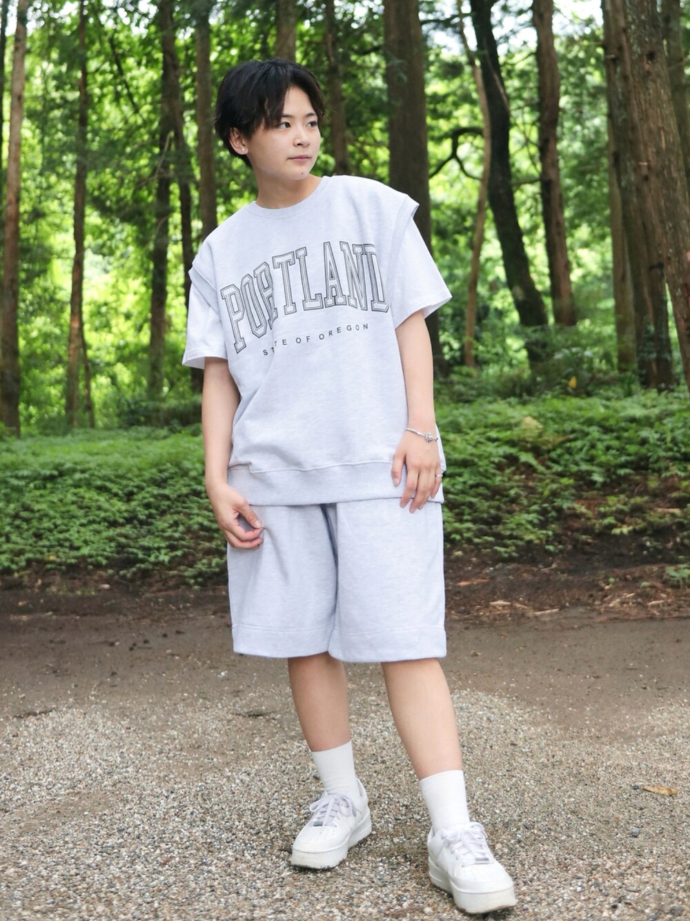 トップス: PORTLAND スウェットベスト【3 color】 パンツ: PORTLAND スウェットショートパンツ【3 color】 身長:153cm Instagram@boyshe_official