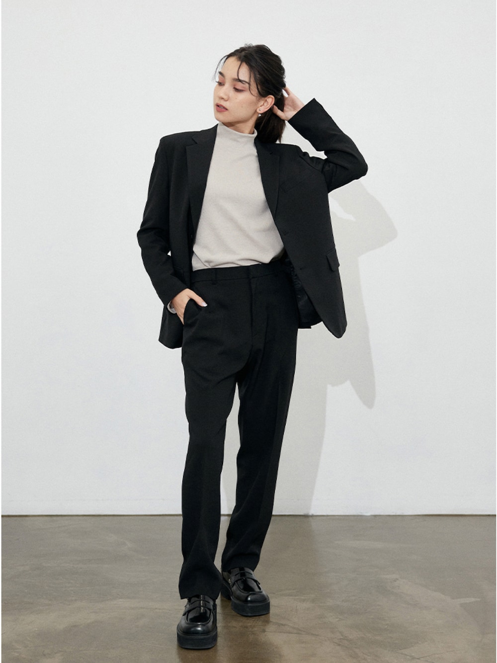 《BOYSHE Basic Suit》シングルブレスト&スリムスラックス【セットアップ】 ✨くびれのないオリジナルボーイッシュスーツ✨ 身長:163cm ジャケット:L、パンツ:L着用 Instagram@boyshe_official