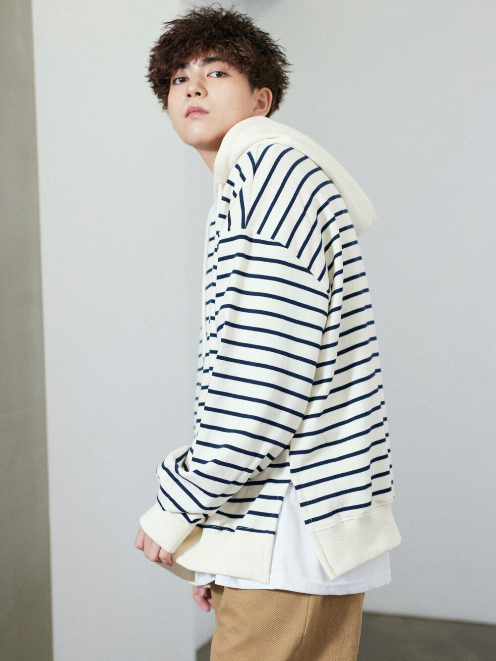・トップス: ボーダー サイドスリット スウェットパーカー アイボリー 身長:163cm Instagram@boyshe_official
