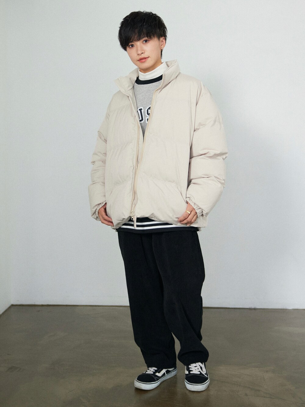 アウター: ウェルロン中綿ショートジャケット【3 color】 トップス: HOUSTON裏起毛クルーネックスウェットMTM グレー パンツ: コーデュロイ ダブルタックパンツ ブラック 身長:161cm Instagram@boyshe_official