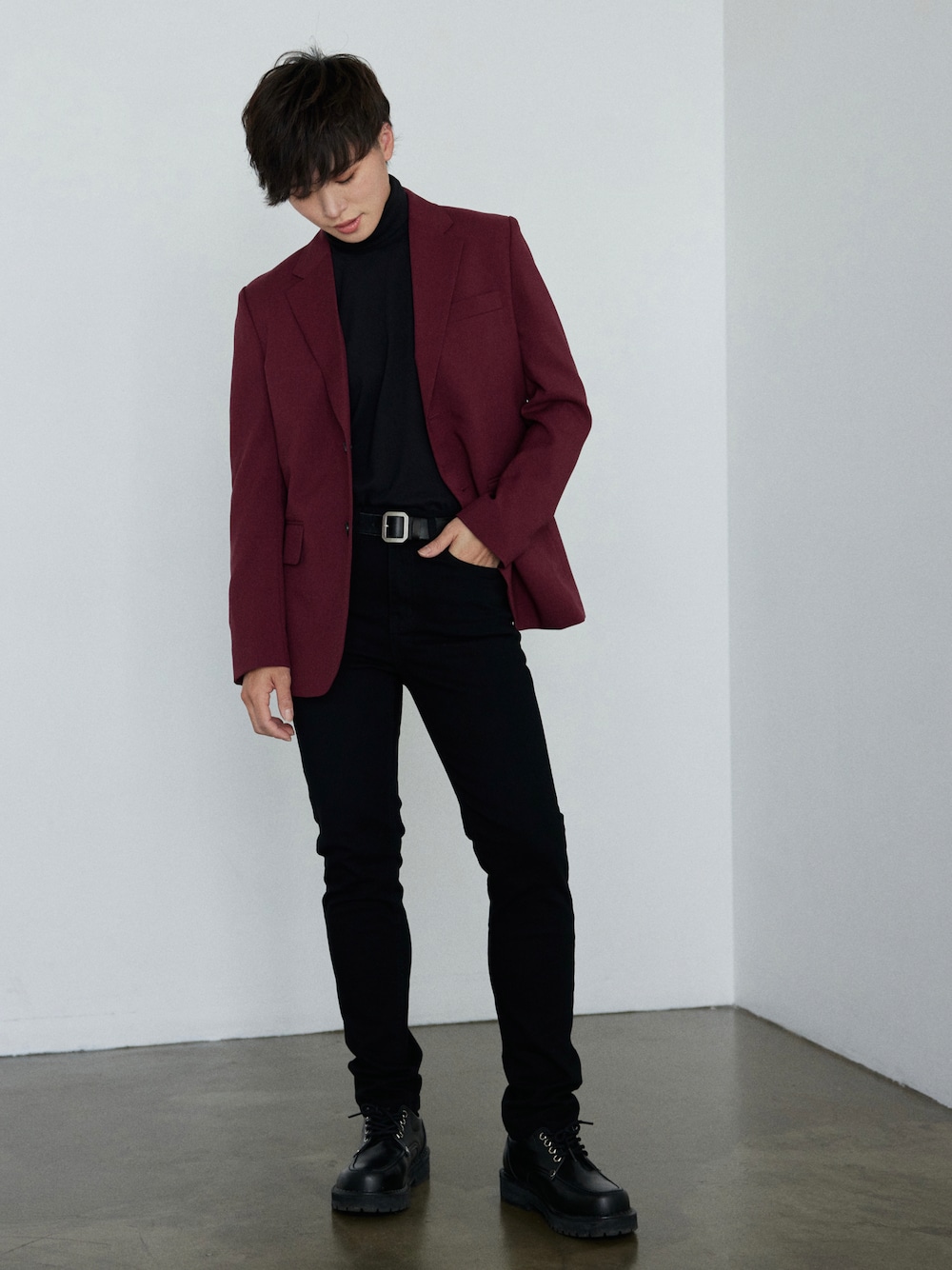 《BOYSHE Basic Suit》シングルブレスト&スリムスラックス【セットアップ】 ✨くびれのないオリジナルボーイッシュスーツ✨ 身長:161cm ジャケット:S着用 Instagram@boyshe_official